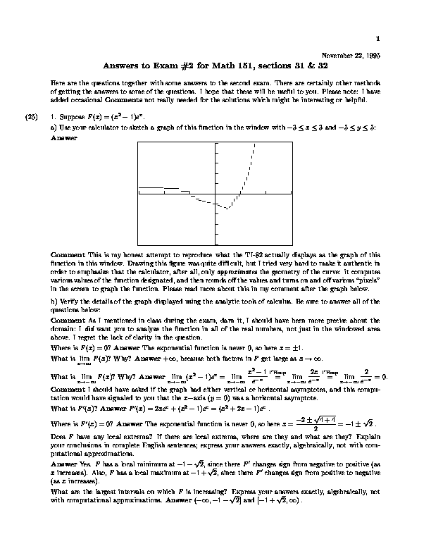 Math 151, 1995: Midterm #2, page 1 of 6