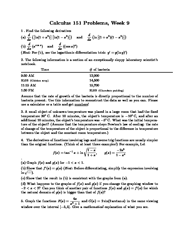 Math 151, 1997: Workshop #9, page 1 of 1